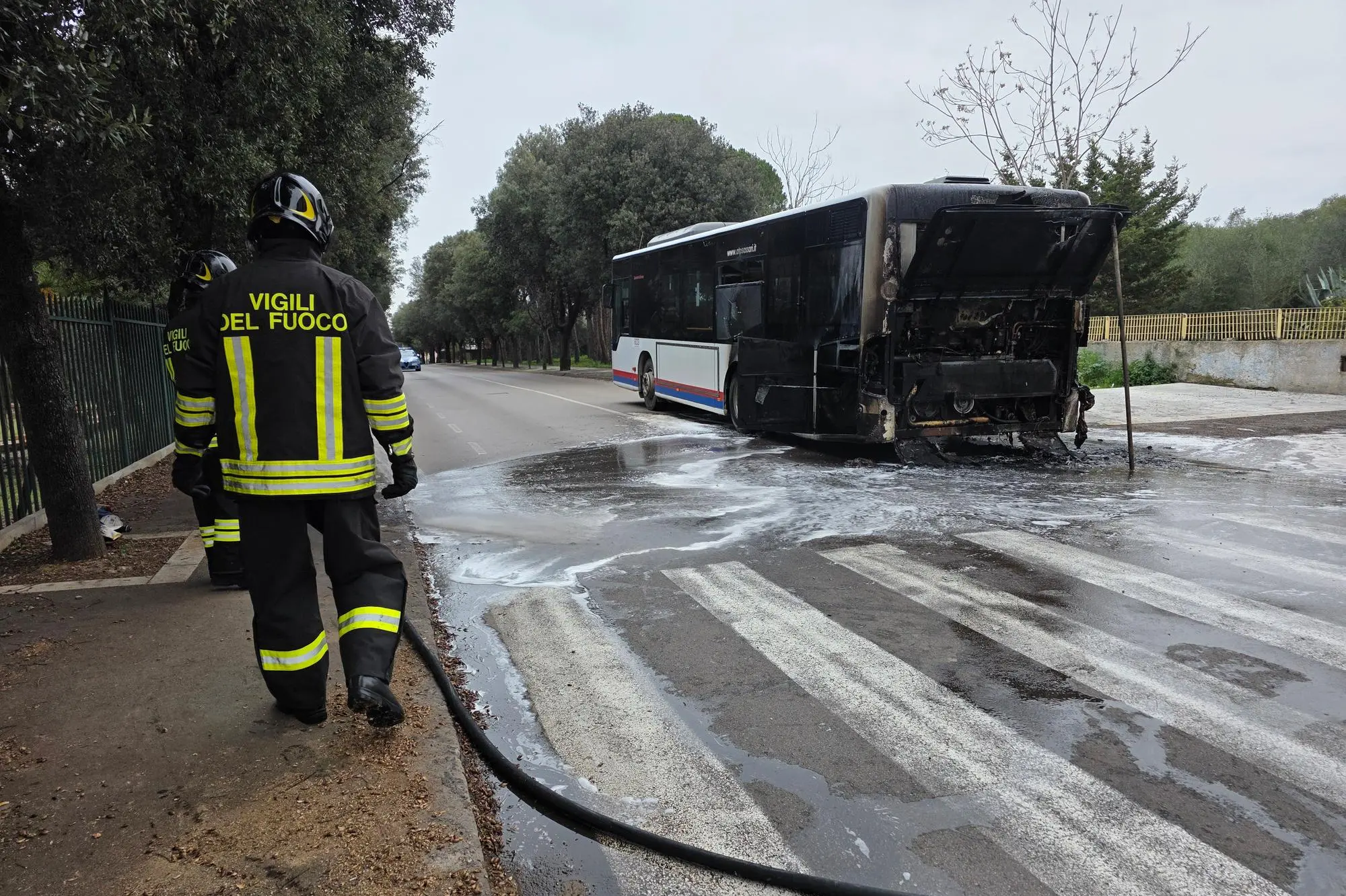 Heute Morgen geriet ein ATP-Bus auf der Via Bellini in Sassari vor dem Landwirtschaftsinstitut in Brand.