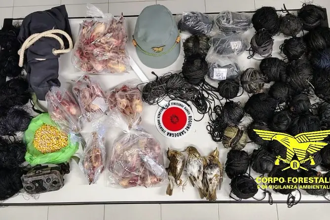 Bei Kontrollen zur Bekämpfung der Wilderei ertappten Forstbeamte vier Personen auf frischer Tat in den agro-bergigen Gebieten von Domus de Maria und Teulada, die Netze zum Fangen von Vögeln auslegten und illegale Futterstellen für Wildschweine errichteten .