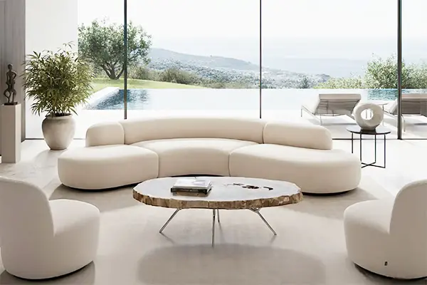 Non si tratta più solo di arredare, ma di curare un’atmosfera. La casa smette di essere una vetrina e diventa un ecosistema vivo, un rifugio dove la bellezza si fonde con l’armonia interiore. Il primo grande protagonista di questa evoluzione è l’abbandono definitivo dello spigolo vivo. Nel 2026, il design abbraccia l’organicità della natura. Come interpretato nella nuova collezione Cloto, il divano smette di essere un semplice arredo per trasformarsi in un’isola scultorea. Le linee sinuose e avvolgenti sono pensate per favorire il rito della conversazione e la presenza umana. Queste composizioni modulari non occupano semplicemente lo spazio: lo abbracciano, seguendo un andamento fluido che invita al relax e alla convivialità autentica.