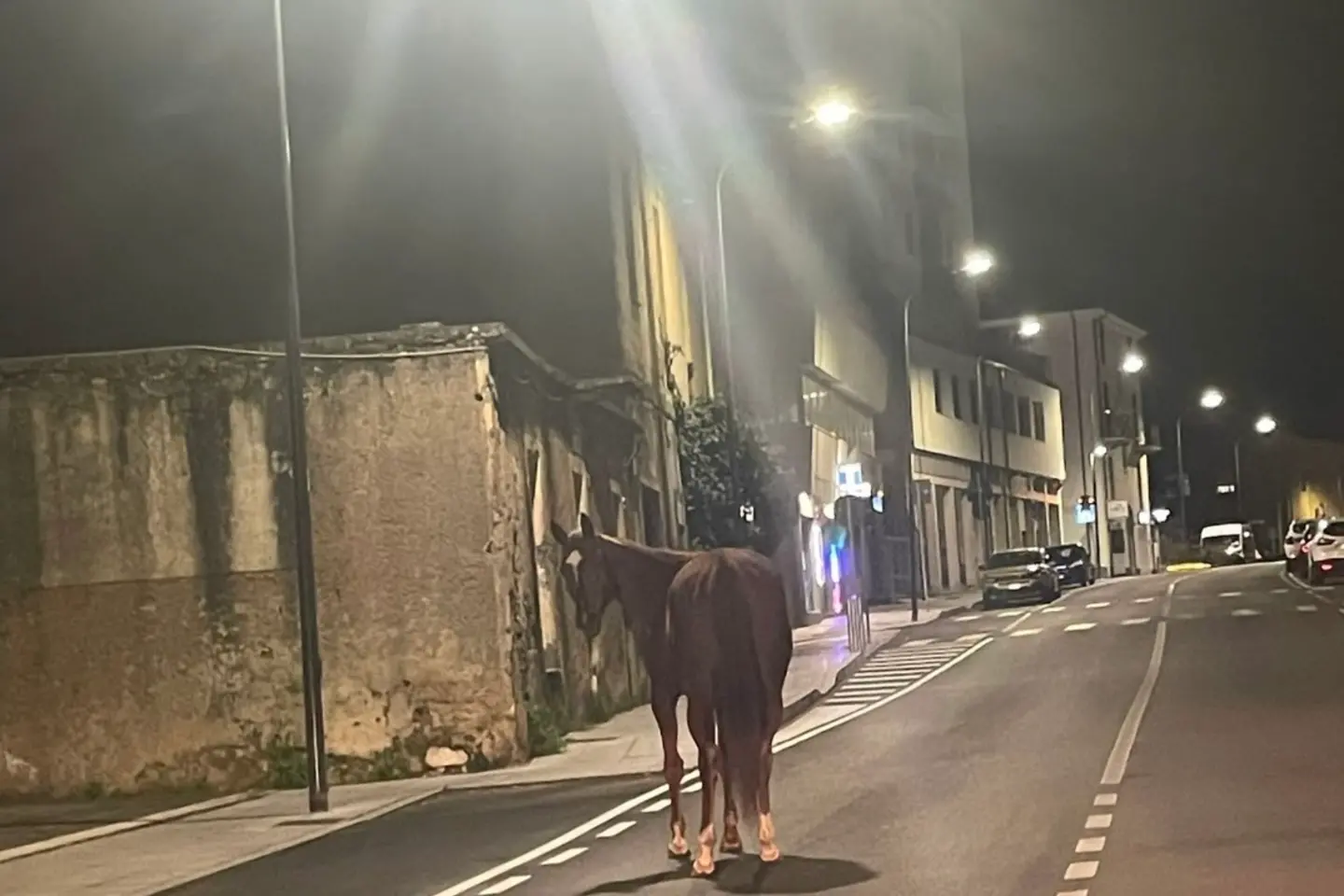 Nella notte di mercoledì, un cavallo ha vagato lungo via Trieste, passando anche davanti alla questura (foto Facebook/Sei di Nuoro se...). L’animale ha poi proseguito verso la rotatoria che fiancheggia l'ospedale Zonchello e, secondo alcune testimonianze, si sarebbe persino fermato al semaforo. L’equino è stato infine fermato e recuperato senza conseguenze.