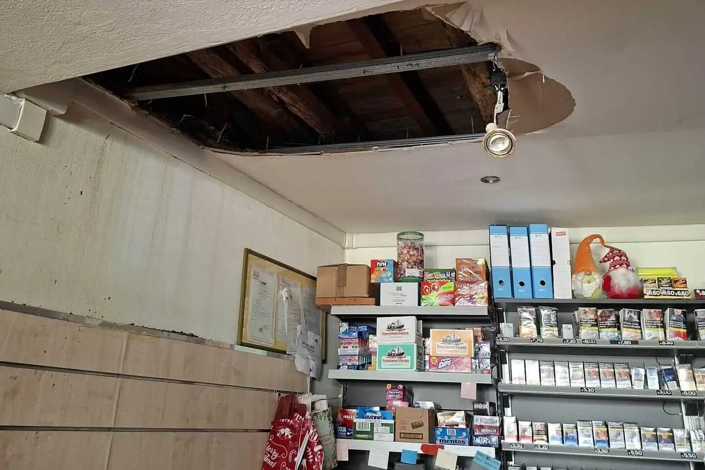 Crolla il controsoffitto nella tabaccheria