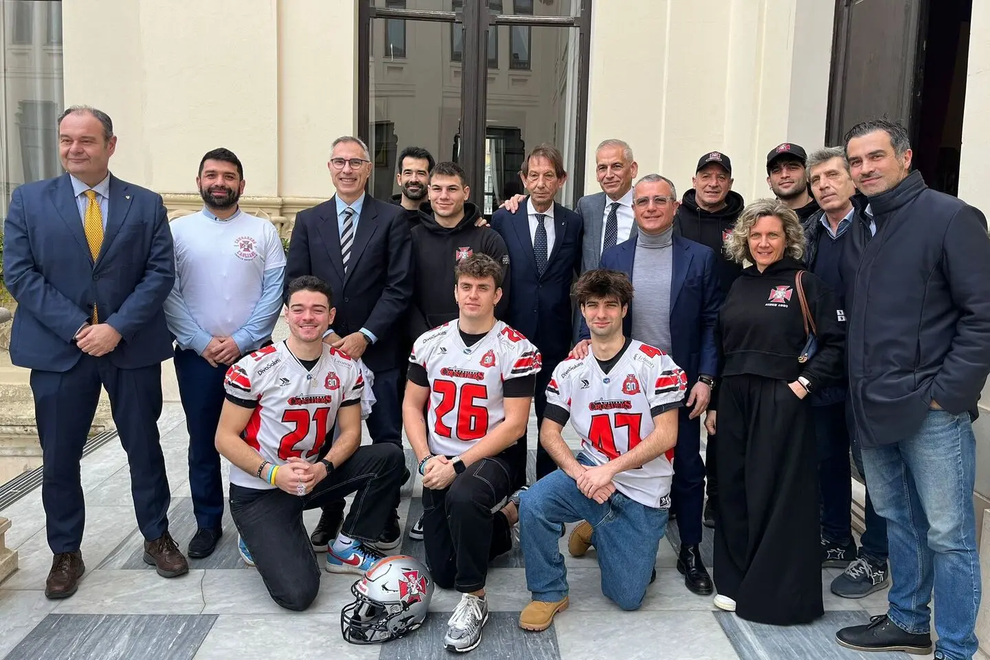 Un nuovo campo (a Terramaini, già inaugurato nella scorsa stagione), un nuovo head coach, nuovi sponsor (Crai è il principale) ma lo stesso entusiasmo che da 35 anni anima l’attività dei Crusaders. I cagliaritani si preparano alla nuova avventura nella Terza Divisione Fidaf (il campionato italiano di football americano a 9) al via domenica 22. Ieri la presentazione in sala consiliare a Palazzo Bacaredda (Marco Benucci e Michele Boero a fare da padroni di casa, Bruno Perra, per il Coni, il “padrino”) della franchigia rossargento che celebra l’anniversario con propositi di successo: «Il nostro unico obiettivo stagionale è vincere il campionato», ha tagliato corto Joseph Anthony Tricario, il nuovo head coach che si è detto «emozionato per questa sfida e impressionato da un clima diverso da tutti quelli che aveva sperimentato nelle altre esperienze in Europa». Novità anche in regia con il qb Lorenzo Piva.