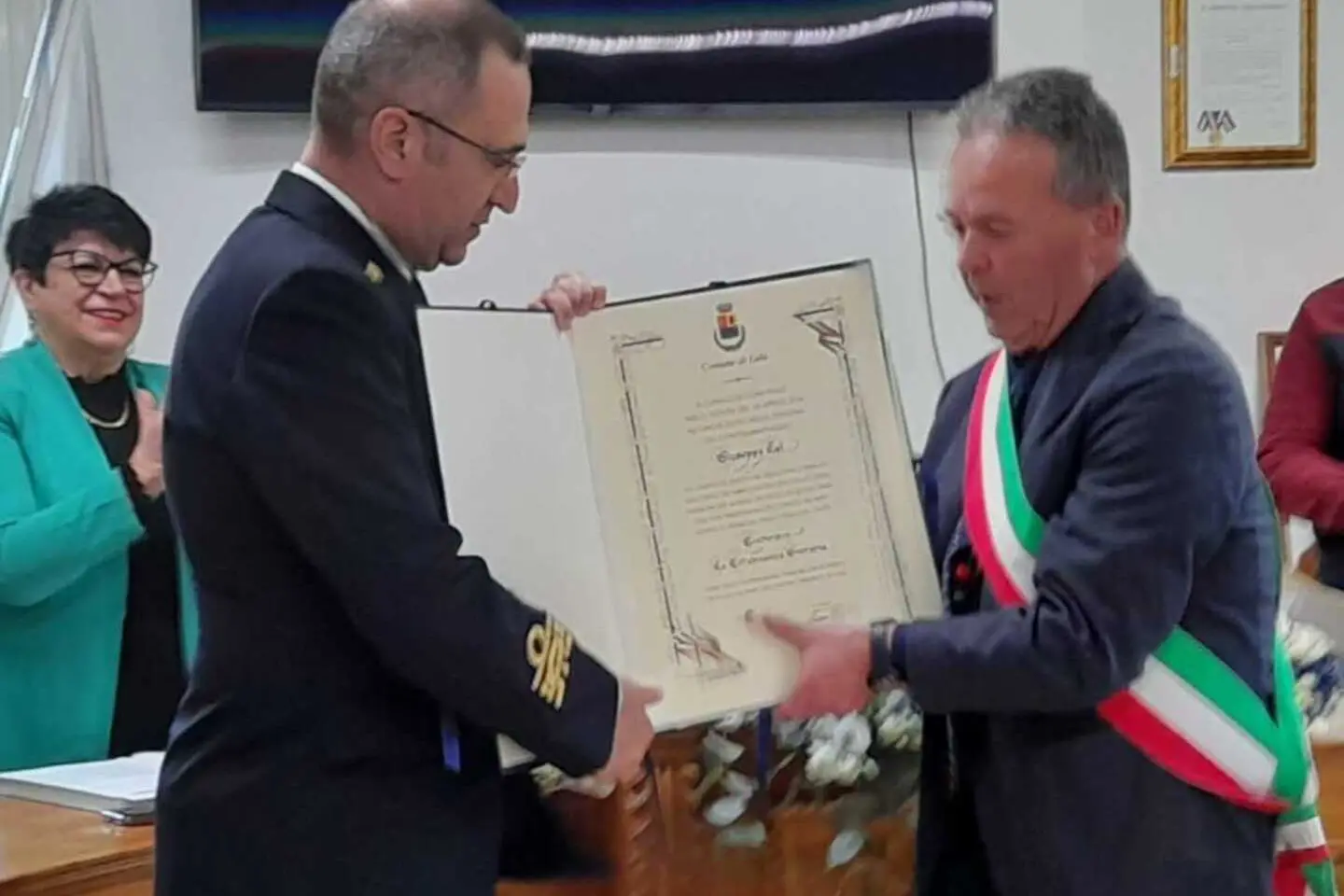 Dopo aver condotto la nave più bella del mondo per 23 mesi e 10 giorni al comando di oltre 400 uomini, fatto il giro del globo doppiando Capo Horn, il capitano di vascello del Vespucci contrammiraglio Giuseppe Lai è approdato a Lula, paese dei genitori e nonni, dove vivono molti parenti. Ieri alle 11 gli ha conferito la cittadinanza onoraria durante una cerimonia nell’aula consiliare. «Sono emozioni che risvegliano i miei ricordi di bambino, un ambiente che mi ispira serenità con i ritmi lenti, l’odore della legna che arde nel caminetto dei miei nonni, i profumi della campagna e che oggi ritrovo intatti insieme all’affetto delle persone», dice il “comandante Lai” come viene affettuosamente chiamato a Lula. Accompagnato dalla moglie e dalla mamma, ha ricevuto la pergamena dal sindaco Mario Calia. Venerdì, in prima serata su Rai3, seconda puntata sul Vespucci. (m. d.)