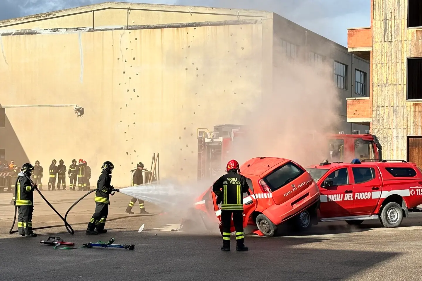 La manifestazione ha visto i vigili del fuoco impegnati in diverse esercitazioni. La prima ha riguardato l’estrazione di una persona da un’auto coinvolta in un incidente stradale, lo spegnimento del veicolo che va a fuoco e la rimozione delle vetture coinvolte.