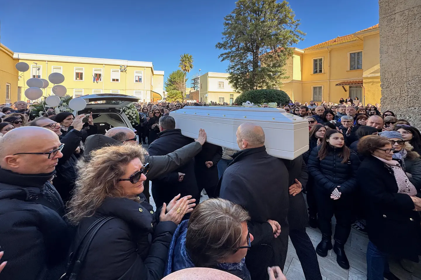 Il dolore sordo filtra tra i sussurri laceranti di mamma Eleonora. «Non ce la faccio. Non è giusto». Piange, la sorreggono. «Me l’hanno portato via». Fatica a separarsi dalla piccola bara bianca pronta a essere adagiata nel carro funebre.