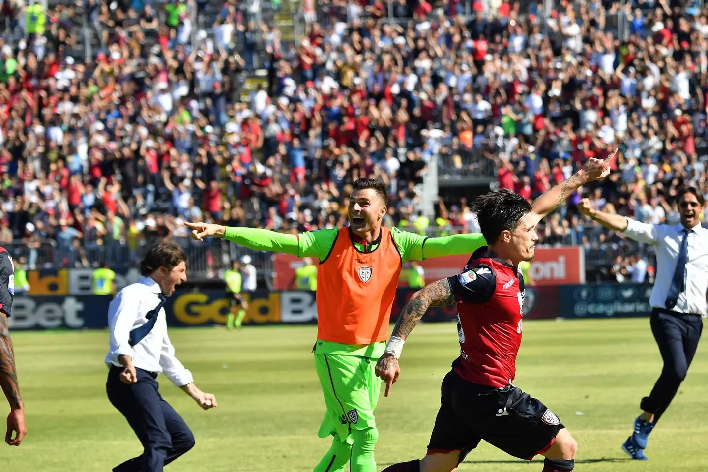 Un gol, pesantissimo perché arrivato all’ultimo minuto del campionato, lo ha segnato Pisacane al Milan il 28 maggio del 2017. Il Cagliari di Massimo Rastelli conquista una bella salvezza, con 47 punti si assicura un’estate tranquilla e chiude la stagione con il Milan al Sant’Elia. Nell’ultimo giorno del vecchio stadio, che pochi giorni dopo vivrà la sua serata d’addio. Il Cagliari schiera Crosta in porta, la difesa a quattro con – da destra a sinistra – Padoin, Pisacane, Tachtsidis e Murru, in mezzo Ionita, Deiola e Faragò, con Joao Pedro alle spalle delle punte Borriello e Diego Farias. il Milan, che chiude la stagione al sesto posto, è guidato da Vincenzo Montella e scende in campo con Donnarumma in porta, difesa con Calabria, Gomez, Paletta e Vangioni, in mezzo Kucka, Locatelli e Fernandez, i tre davanti sono Suso, Bacca e Honda. Il Cagliari va in vantaggio al 17’ con Joao Pedro, l’assist è di Borriello. Nella ripresa Crosta para un rigore a Bacca, ma nulla può fare sul secondo rigore realizzato da Lapadula (subentrato al laterale Vangioni dopo l’intervallo). Siamo al finale, il 90’ è passato da un paio di minuti, punizione forte e chiara di Joao Pedro, sulla respinta corta di Donnarumma si avventa Psacane che fa esplodere lo stadio. Chissà se nei suoi sogni c’era già spazio per quel posto in panchina, che sarebbe arrivato otto anni dopo. A fine gara piange, stringe mani, saluta in pubblico, vola.