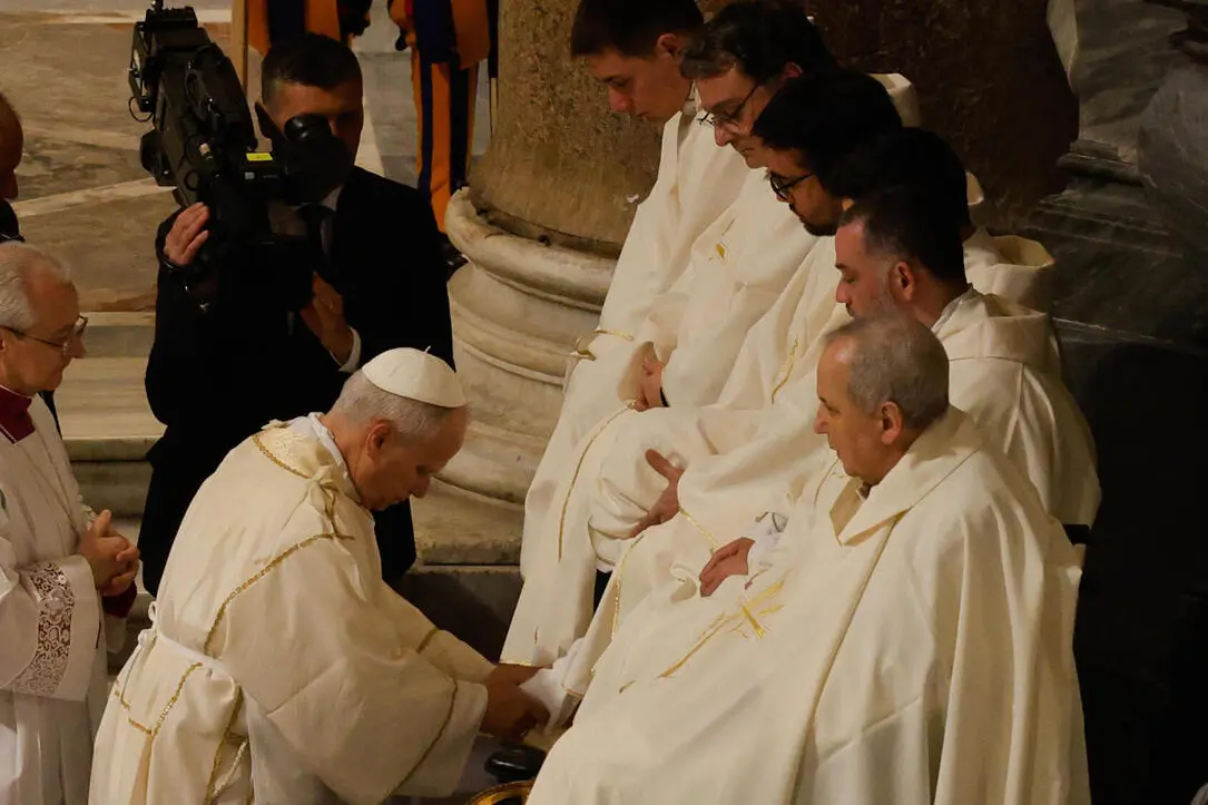«Viviamo un'ora oscura della storia, con un mondo conteso e devastato», ha detto ieri di buon mattino nella messa del Crisma papa Leone. »È una bestemmia contro Dio quando l'uomo vuole vincere uccidendo», rincara quindi in serata quando con la celebrazione della messa in “coena domini” apre il Triduo Pasquale vero e proprio, alla vigilia della Passione, morte e resurrezione di Cristo. È anche la prima volta che papa Leone stesso compie la Lavanda dei Piedi. Un gesto che Prevost ha deciso di presiedere nella Basilica di San Giovanni in Laterano, facendone partecipi dodici sacerdoti della diocesi di Roma cui lava e bacia, dopo averli asciugati, i piedi. Un ritorno alla tradizione, ma solo per quanto riguarda la formalità dei riti.