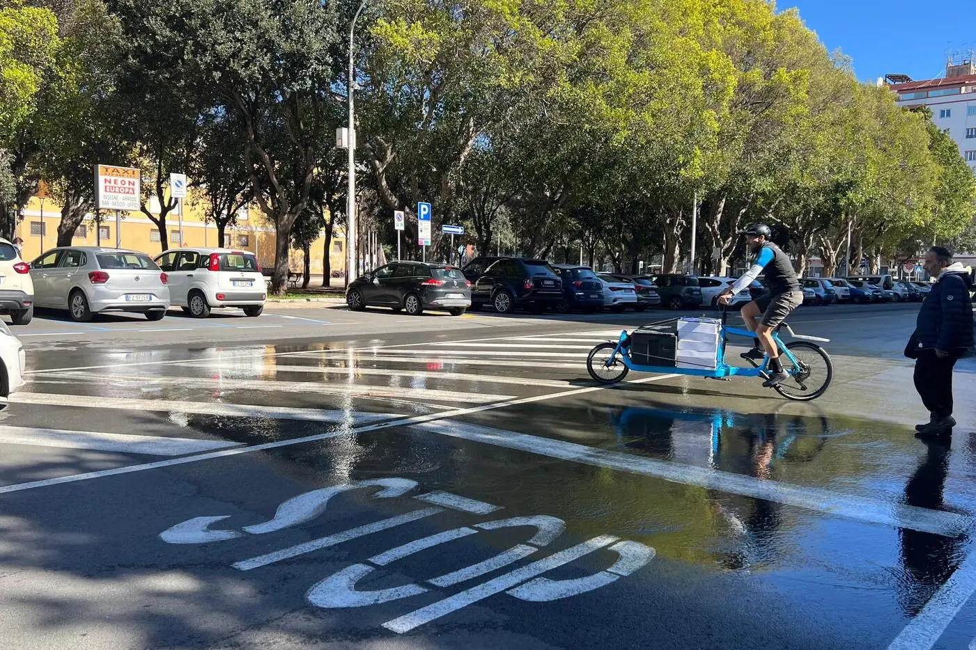 Asfalto bagnato e una pozzanghera che si allarga verso viale Dante. L’origine dell’acqua in piazza Giovanni XIII sta in una perdita idrica da una valvola di manovra. Ieri mattina è concluso il sopralluogo, mentre per la giornata di oggi è previsto l’intervento di una squadra operativa. La fuoriuscita d’acqua, estesa per diversi metri, «non rappresenta al momento un pericolo», fanno sapere da Abbanoa: non ci sono ripercussioni sul traffico, l’acqua defluisce regolarmente e non si segnalano particolari rischi per i pedoni.