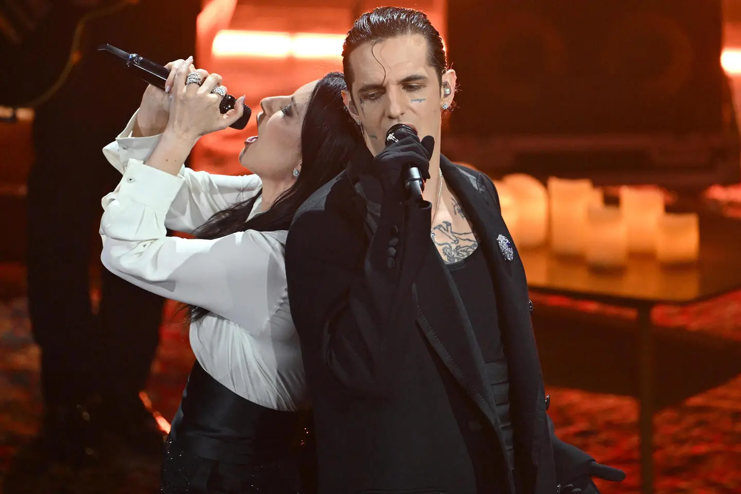 Tocca poi ad Achille Lauro che torna sul palco dove è stato quattro volte in gara, l'ultima nel 2025, superospite fisso, ospite speciale e questa volta co-conduttore. Il pubblico lo acclama ed è standing ovation per il duetto con Laura Pausini sulle note di “16 marzo”. Ma è molto più di cuore quando, avvolto nel buio, con un coro di venti elementi e il soprano Valentina Gargano, interpreta “Perdutamente”, uno dei suoi brani più toccanti ma soprattutto il pezzo che la mamma di Achille Barosi, morto a 16 anni nella strage di Capodanno in Svizzera, ha cantato accanto alla bara del figlio: «Se questa cosa può aver confortato anche solo una persona e aver fatto del bene, per noi era un dovere».