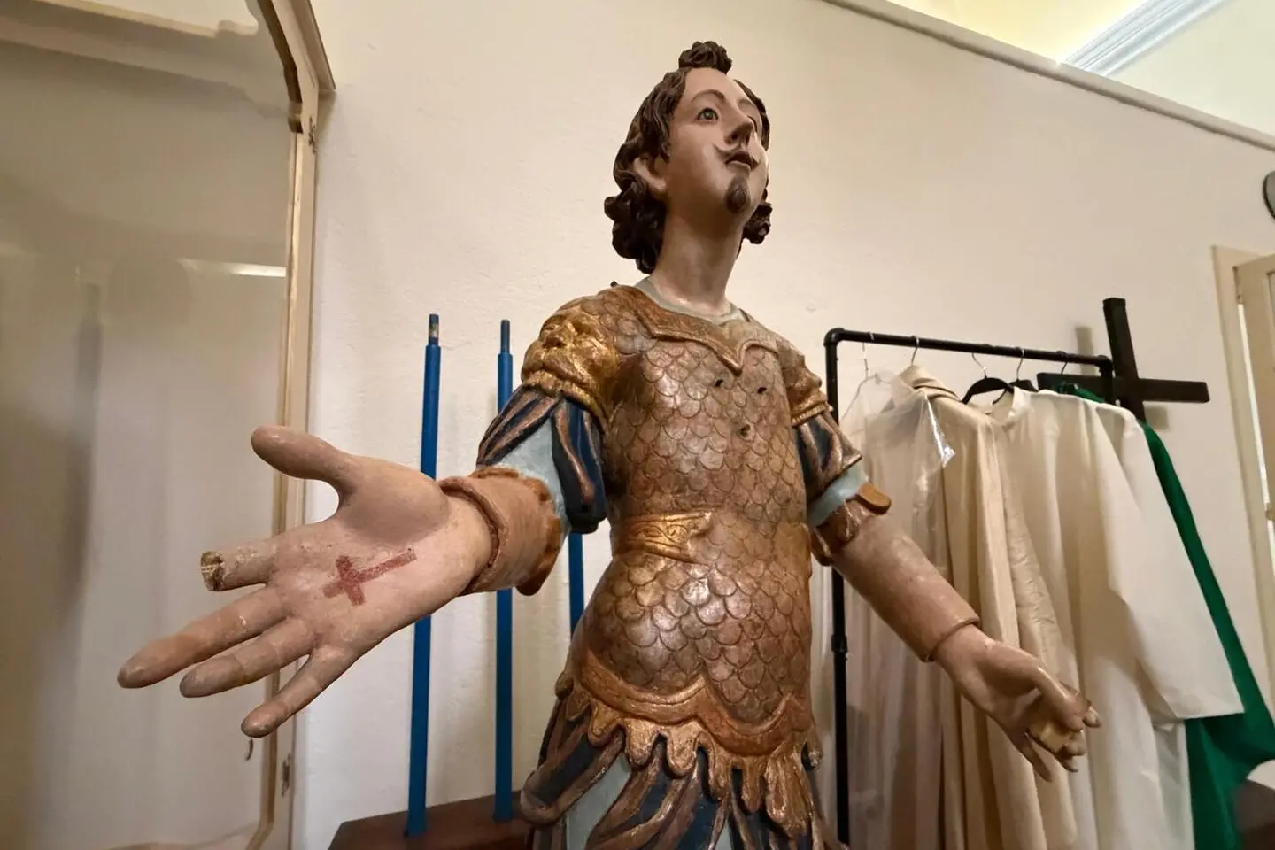 «Il restauro della statua del santo e dei due cocchi, finanziato dalla fondazione Banco di Sardegna, non è ancora concluso ma siamo a buon punto. La Soprintendenza sta effettuando ulteriori verifiche per valutare le condizioni degli interventi pregressi e programmare le prossime manutenzioni», spiega Andrea Loi, presidente dell’Arciconfraternita del Gonfalone.