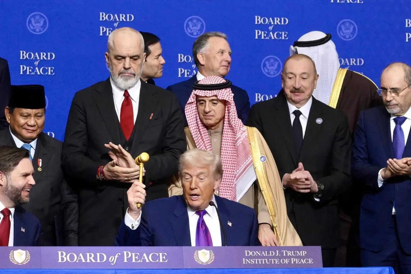 La sede è l’Institute of Peace, ribattezzato col suo nome («un’iniziativa di Marco Rubio, io non c’entro niente»). In platea i rappresentanti di quasi cinquanta Paesi, premier come l’ungherese Viktor Orban o presidenti come l’argentino Javier Milei. Altri come osservatori, come la commissaria Ue per il Mediterraneo Dubravka Suica, un alto funzionario del ministero degli Esteri di Berlino e il vicepremier Antonio Tajani per l’Italia. Assente Parigi, idem Mosca e Pechino, che stanno ancora valutando l’invito ma «saranno coinvolti», assicura Trump. Musica da comizio (dai Beach Boys alla versione americana di “Gloria” di Umberto Tozzi) e cappellini rossi Maga distribuiti ai partecipanti. The Donald parla per un’ora ma divaga molto: attacca gli oppositori interni, esalta i guadagni di Wall Street, evoca i dazi, lancia l’ultimatum all’Iran, elogia i leader presenti e pesta sugli assenti: «Alcuni stanno un po’ facendo i furbi ma non funziona, non potete fare i furbi con me». «Stanno giocando un po’, ma si stanno unendo tutti, la maggior parte immediatamente». «Molti dei nostri amici in Europa stanno partecipando oggi e siamo ansiosi di vederli diventare membri a pieno titolo. Tutti vogliono diventare membri, abbiamo avuto una grande risposta dall’Europa».