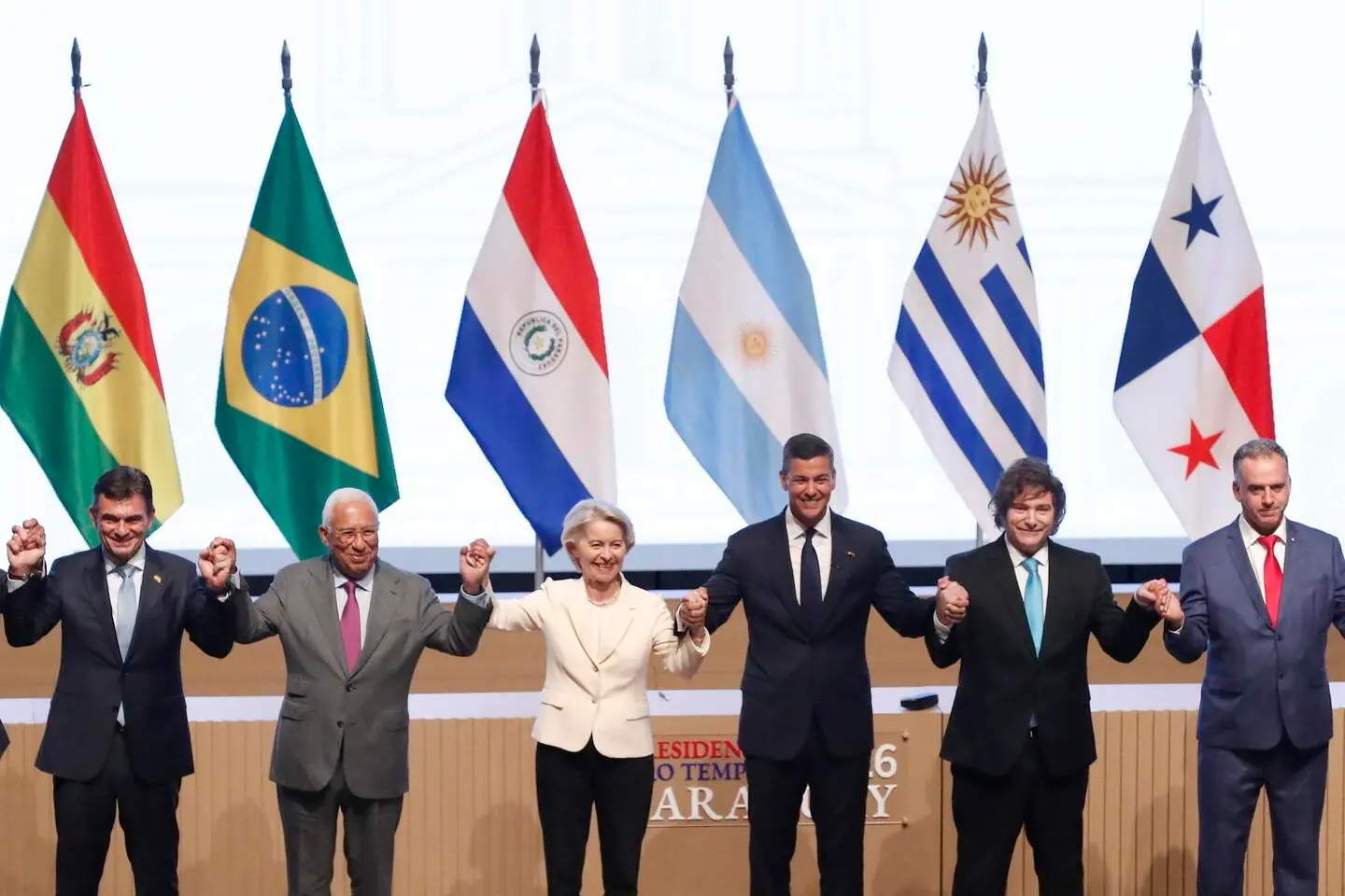 Asuncion. Dopo 25 anni di negoziati l'Unione Europea e il Mercosur hanno firmato in Paraguay uno dei più importanti accordi commerciali al mondo, in grado di creare un'area di libero scambio pari al 20% del Pil mondiale e, come dice Ursula von der Leyen, nuove opportunità per 700 milioni di persone. L'approvazione finale dovrà passare però dal voto del Parlamento europeo, dove permangono forti incognite e il cammino per la ratifica potrebbe durare mesi. Molti agricoltori sono già sul piede di guerra e annunciano nuovi blocchi con i loro trattori in mezza Europa.