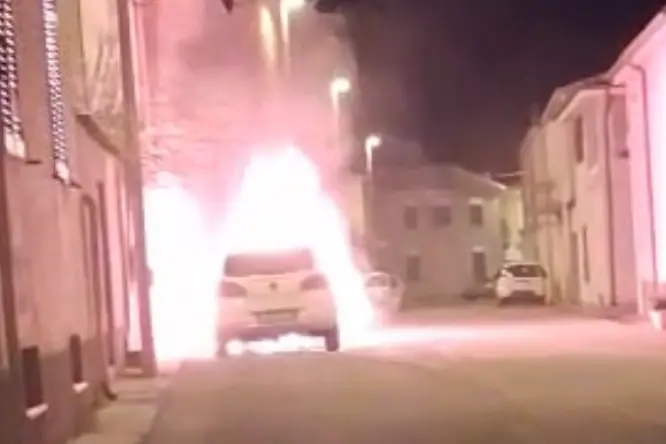 Utilitaria distrutta da un rogo nel centro del paese