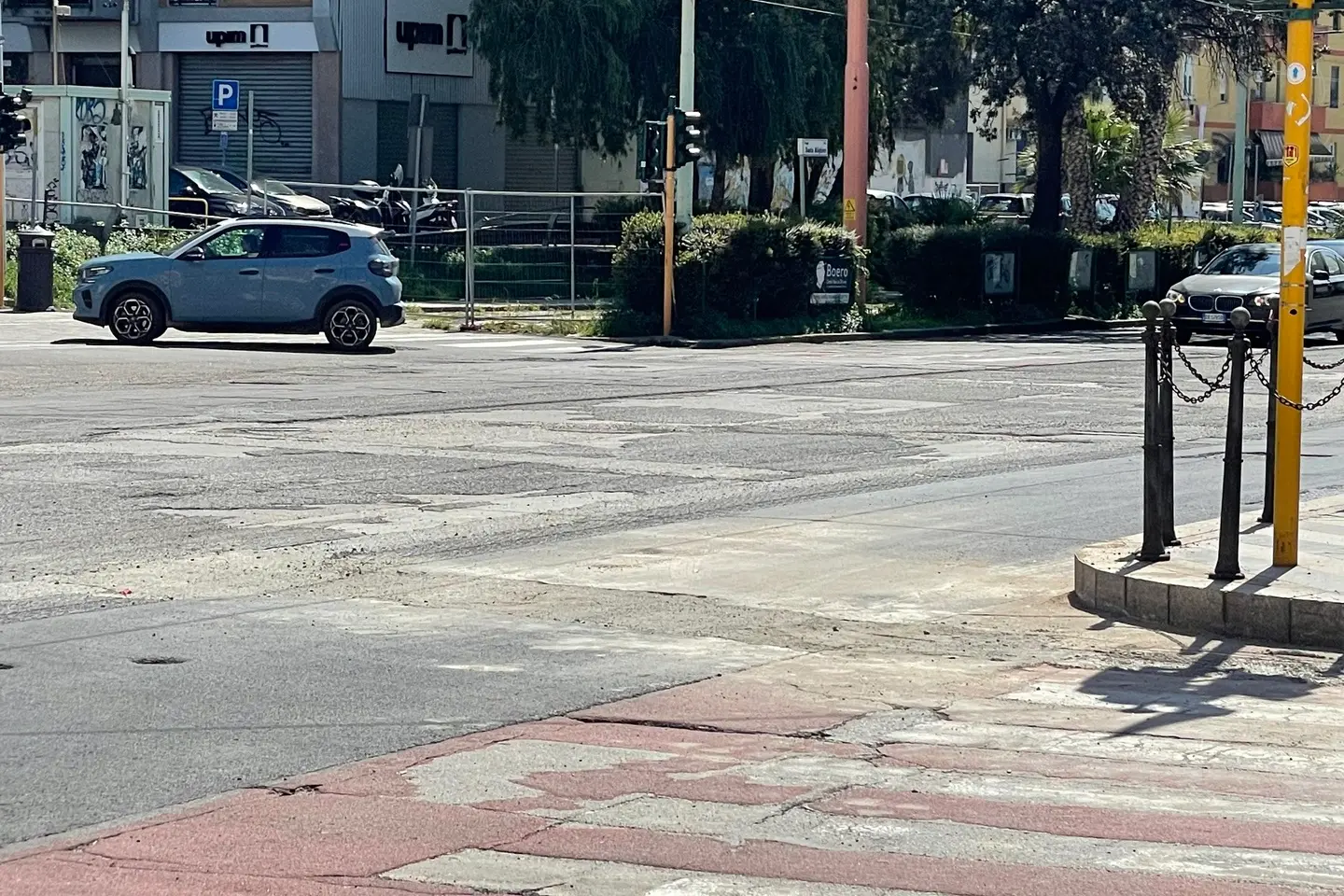 L’asfalto in via Dante è appena stato rifatto, anzi l’intervento deve essere ancora completato in gran parte della strada, eppure è già stato bucato per altri lavori. È successo in due punti, all’incrocio con via Alghero e all’angolo con via Tola, per dei cantieri di e-distribuzione legati alla rete elettrica.