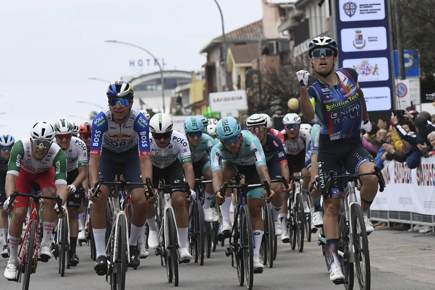 I velocisti hanno atteso tre giorni per avere una vera chance: a Tortolì l’ha colta, per la gioia del team Solution Tech Nippo (nel cui staff c’è anche l’olbiese Govanni Manzottu), Dusan Rajovic. Il 28enne serbo, che si è presentato in Sardegna con già 9 giorni di corsa nelle gambe (Tour of Sharia, con due piazzamenti ed Etoile de Bessèges): così ha rimontato e beffato per pochi centimetri quel Davide Donati che aveva già vinto a Carbonia, nella seconda tappa del Giro di Sardegna. Terzo lo spagnolo Manuel Peñalver, davanti a uno degli italiani dati per favoriti, Enrico Zanoncello.