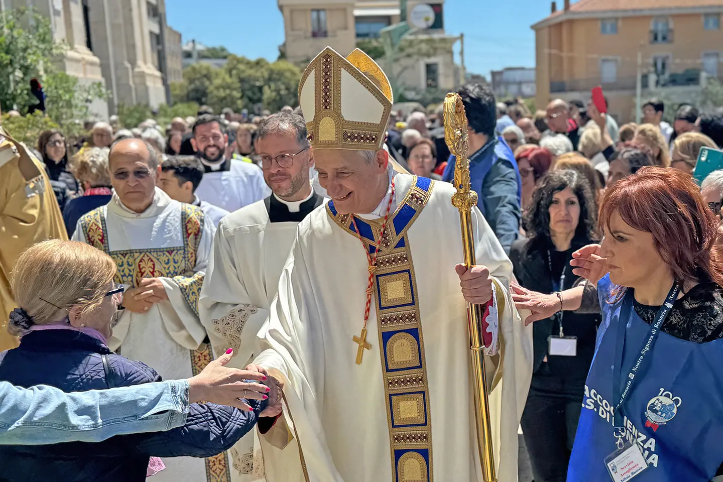 Ieri la grande cerimonia per i festeggiamenti dei cento anni dalla dedicazione della Basilica di Bonaria a Cagliari. Ospite d’onore il cardinale Matteo Zuppi che ha richiamato il ruolo dell’Isola nel Mediterraneo e ha lanciato un forte appello per la pace: «Non possiamo accettare la guerra come soluzione dei conflitti». Oggi, dalle 7.30 diretta su Videolina con Simona De Francisci e Mariangela Lampis per l’arrivo del pellegrinaggio da Sinnai a Bonaria.