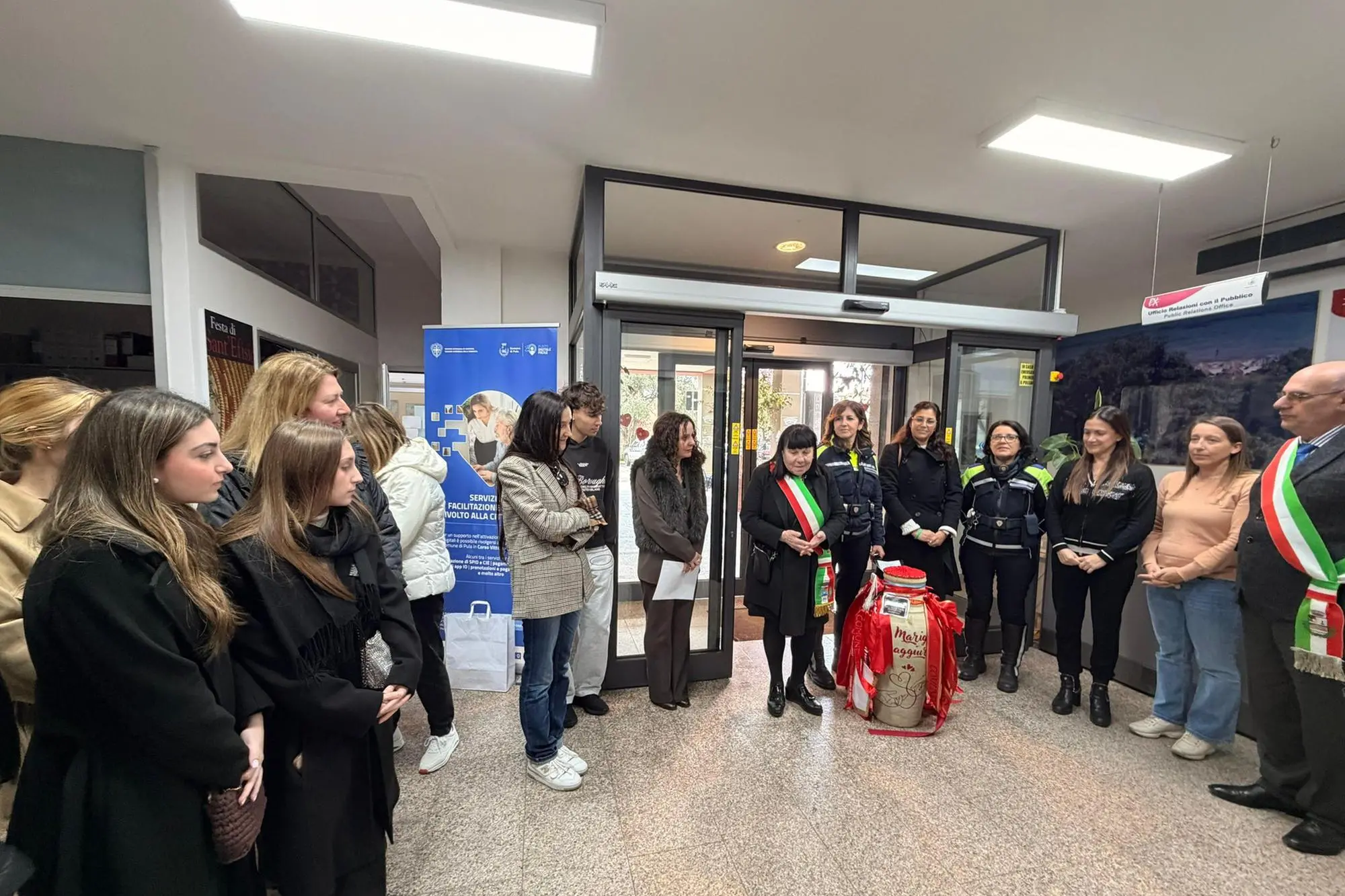 L’arrivo dell’anfora è stato accolto dal sindaco Walter Cabasino, la vicesindaca Elisabetta Loi e l’assessora alle Politiche sociali Manuela Serra, insieme agli agenti della Polizia locale, ai dipendenti comunali e ai giovani del Servizio civile.