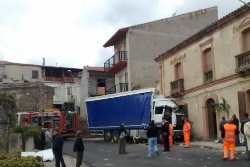 Busachi, Tir impazzito sfonda una casa:autista e inquilini illesi per miracolo
