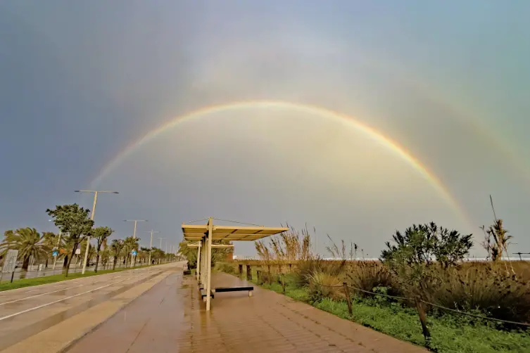 Spettacolo nel cielo sul litorale di Cagliari, dove i raggi del sole, filtrati dalla pioggia che ha colpito la Sardegna in queste ore, hanno “disegnato” nel cielo uno stupendo doppio arcobaleno.