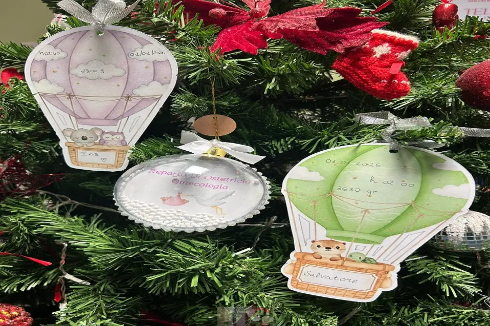 L’Unità Operativa di Ostetricia e Ginecologia ha festeggiato i primi due nuovi nati nel 2026 con due piccole mongolfiere, contenenti i dati dei due piccoli, appese all’ingresso del reparto e sull’albero di Natale allestito in corsia.
