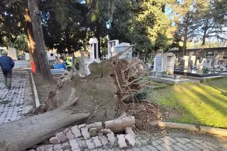 Alberi abbattuti dal vento al cimitero di San Vito