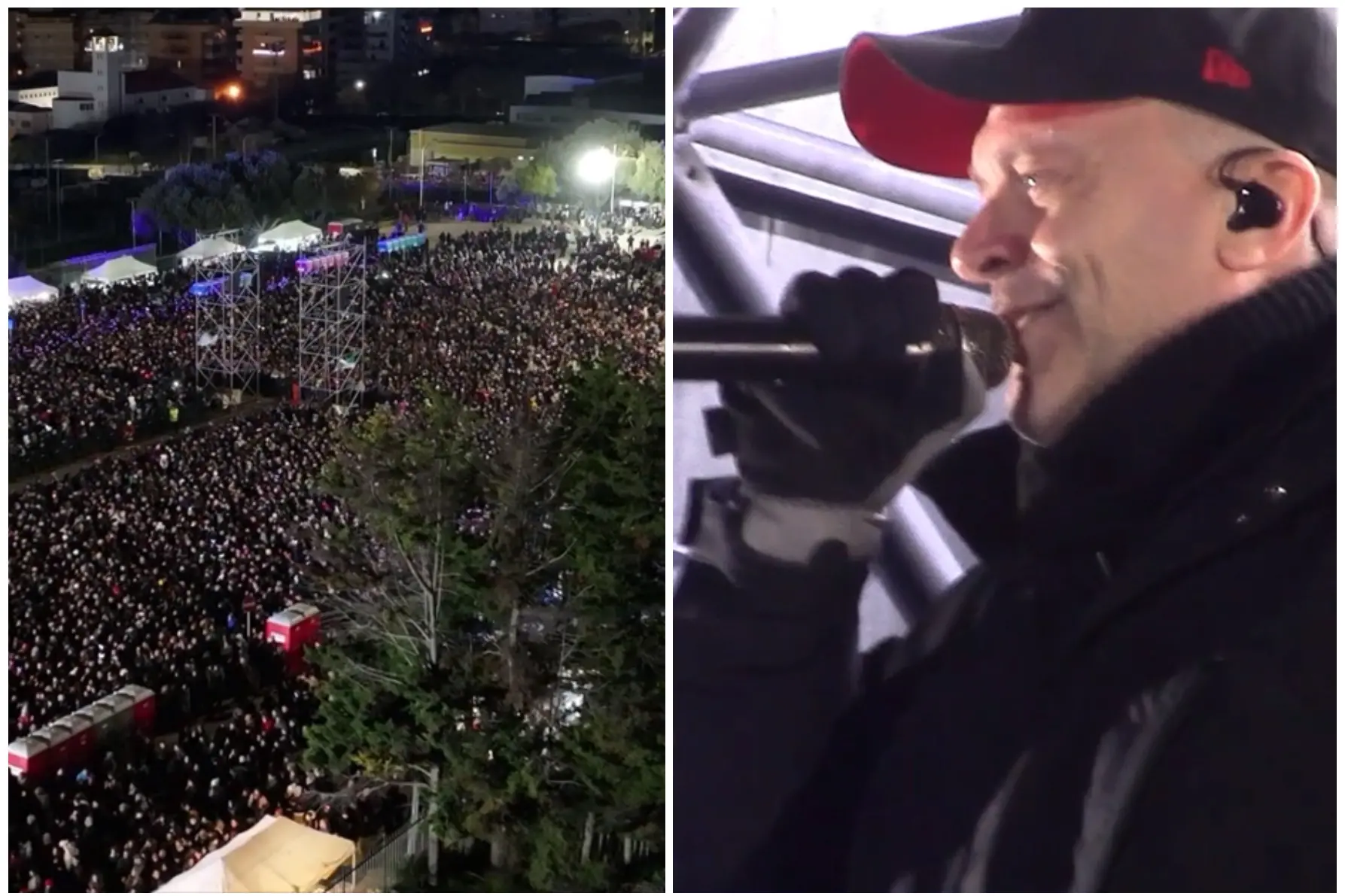 Secondo quanto stimato da forze dell’ordine e organizzatori ci sarebbero state circa 35mila persone tra l’area concerto e gli spazi attigui, all’interno della zona rossa. Dopo l’introduzione musicale di Sergione dj, è iniziata l’esibizione dell’ex 883, intorno alle 22.20, che ha cantato le sue maggiori hit fino alle 23.40.