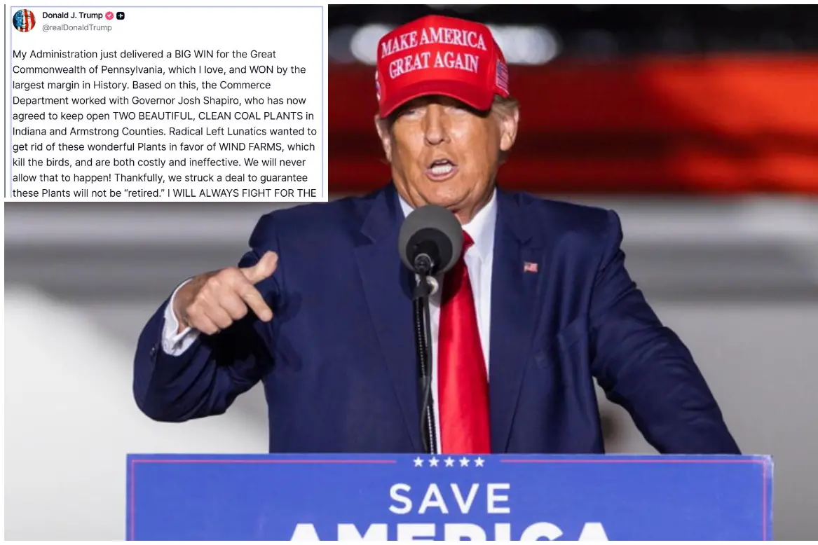 «La mia amministrazione ha appena ottenuto una grande vittoria in Pennsylvania. Il Dipartimento del Commercio ha collaborato con il governatore Josh Shapiro, che ora ha accettato di mantenere aperte due bellissime e pulite centrali a carbone nelle contee di Indiana e Armstrong», ha scritto sul suo social Truth il leader di Washington.