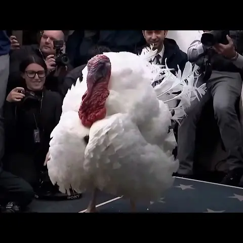 3. Il tacchino Waddle tra i cronisti alla Casa Bianca in posa per le foto prima della grazia di Trump